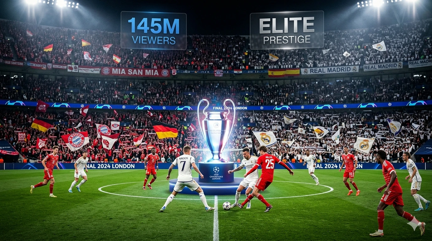 A final da temporada 2023/24 entre Real Madrid e Borussia Dortmund, realizada no Wembley Stadium, foi assistida por 145 milhões de espectadores ao redor do mundo, segundo dados da UEFA. Esse número inclui transmissões domiciliares em televisão e streaming, além de visualizações em espaços públicos. A audiência da final cresceu significativamente nos últimos anos, superando os 106 milhões registrados na final de 2016/17 e os 88 milhões de 2015/16. A UCL viewership nas finais supera consistentemente a audiência do Super Bowl americano em escala global.